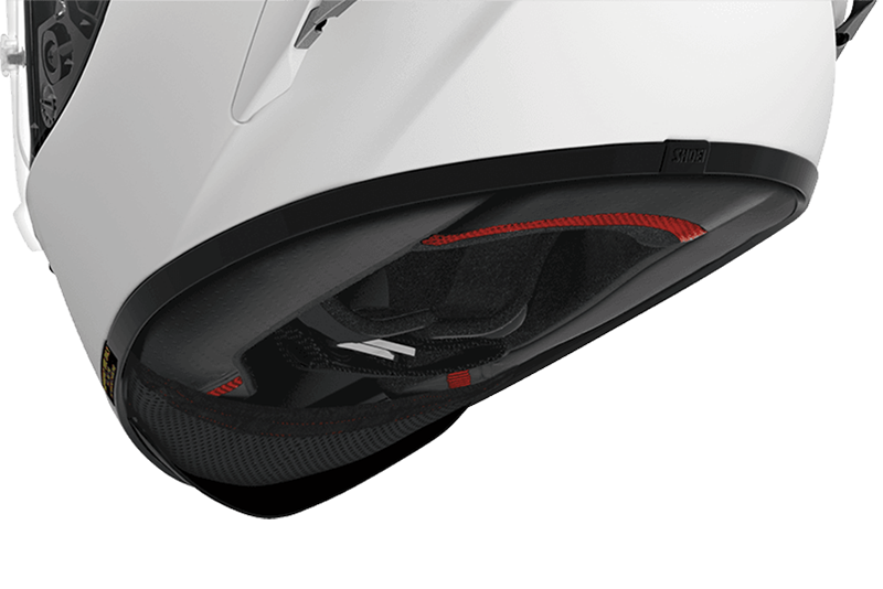 The EPS liner of a helmet is designed to absorb the energies of an impact. Shoei’s innovative Dual-Layer, Multi-Density EPS liner systems not only provide enhanced impact absorption by utilising varying densities of foam in key areas around the rider’s head, they are designed to allow cooling air to travel unrestricted through tunnels created in the EPS, further enhancing our superior ventilation characteristics.